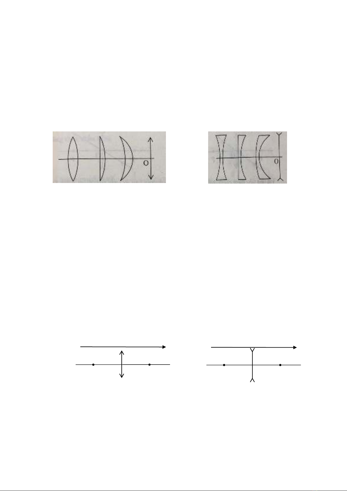 + Thấu kính mép dày (thấu kính phân kỳ): Phần giữa mỏng hơn phần rìa