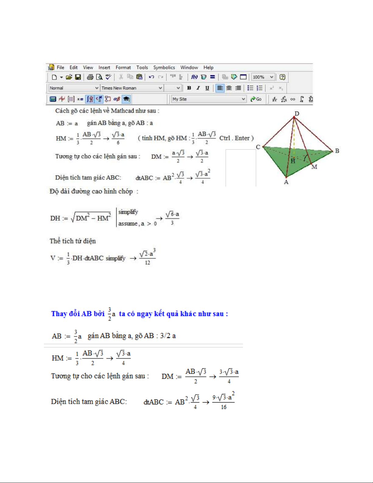 1) Sử dụng phần mềm Mathcad tạo câu trắc nghiệm hình không gian :