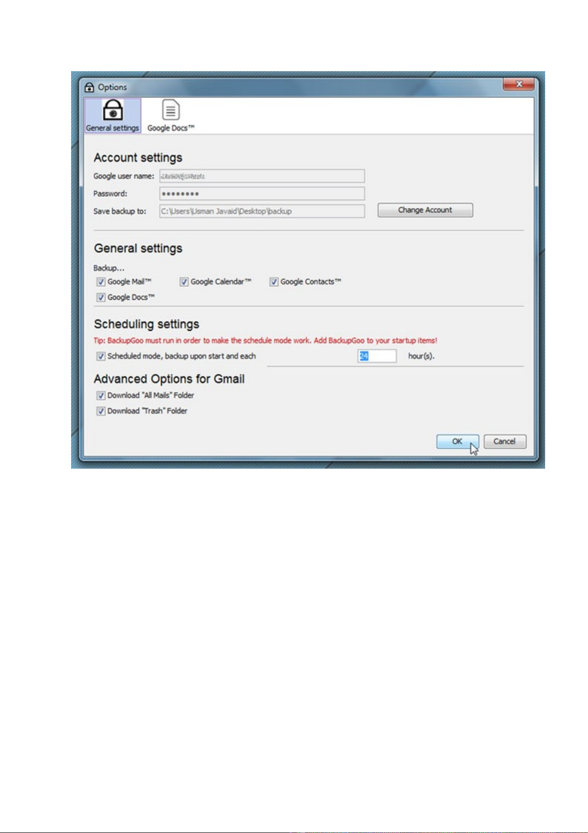 Khi cài đ t và kh i đ ng ch ng trình xong, b n khai báo đ a ch gmail và m t kh u c aặ ở ộ ươ ạ ị ỉ ậ ẩ ủ