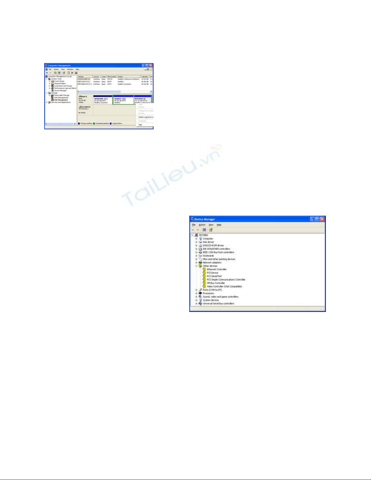 phần cứng mà XP không thể tự nhận dạng và cài đặt. Tham khảo thông tin trong mục Device