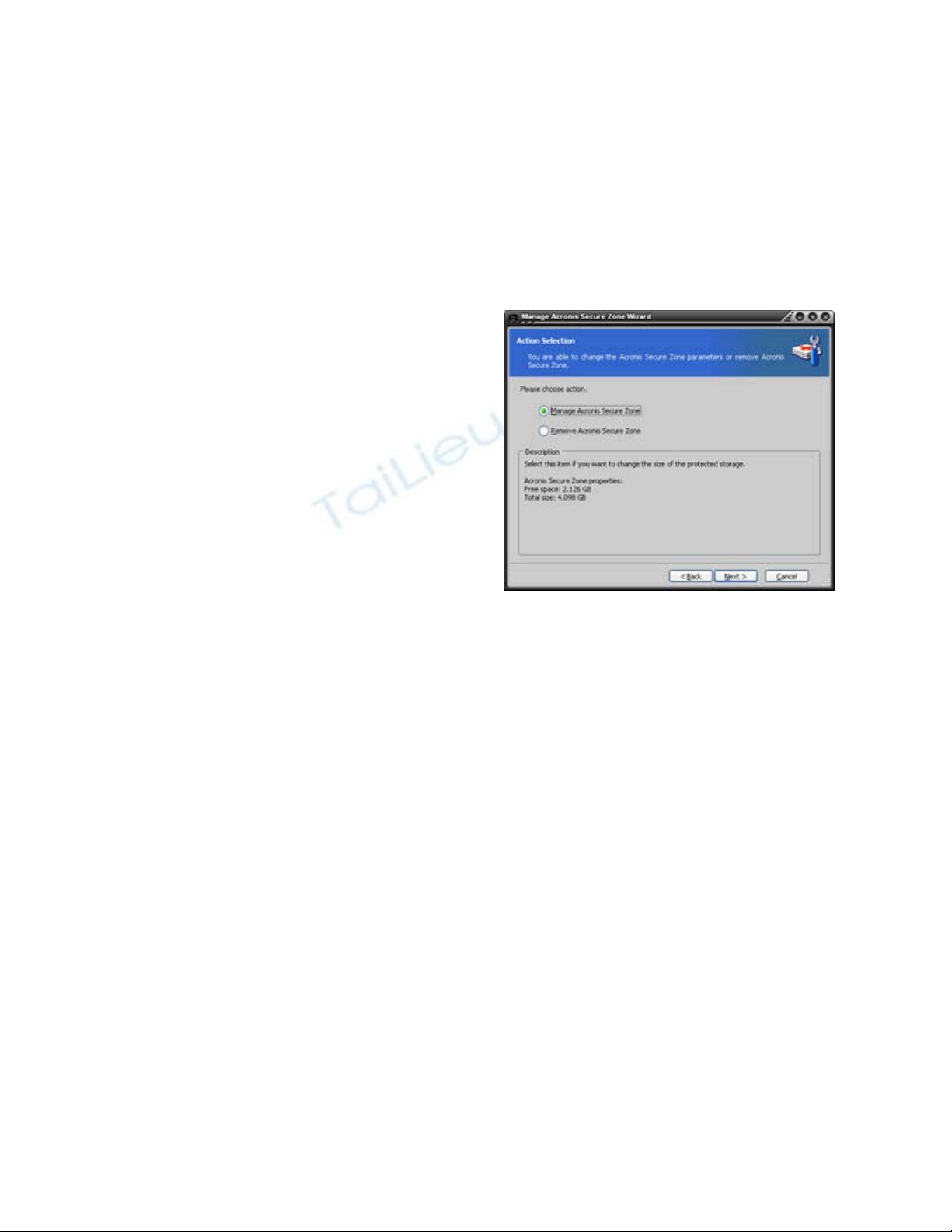 Tạo phân vùng lưu trữ an toàn với tiện ích Manage Acronis Secure Zone của True Image