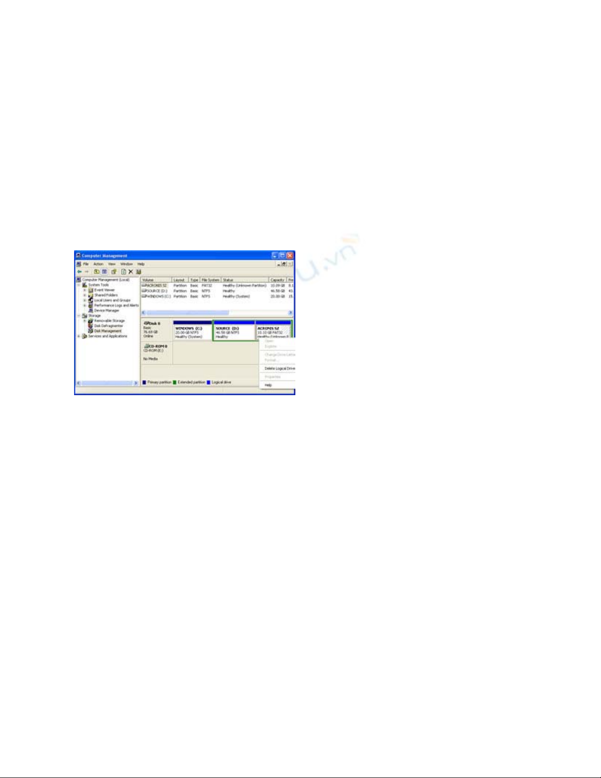 trên ổ đĩa CD-ROM. Tuy nhiên, do đã bị "cắt xén" nên tùy chọn này trong tiện ích Manage