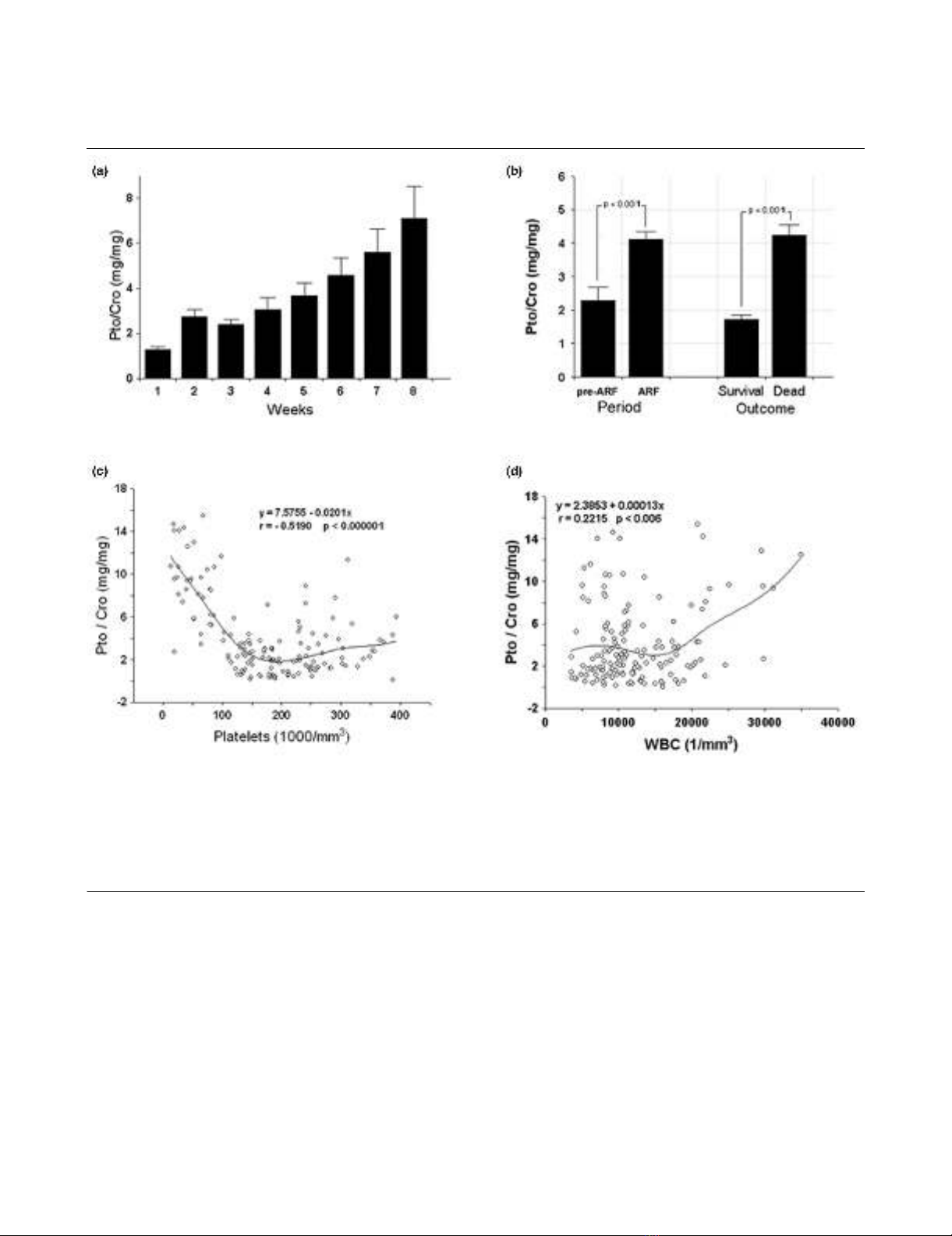 patients. (c, d) Relationship between Pto/Cro and indexes of systemic inflammatory state in ARF period. Pto/Cro negatively correlated with platelet