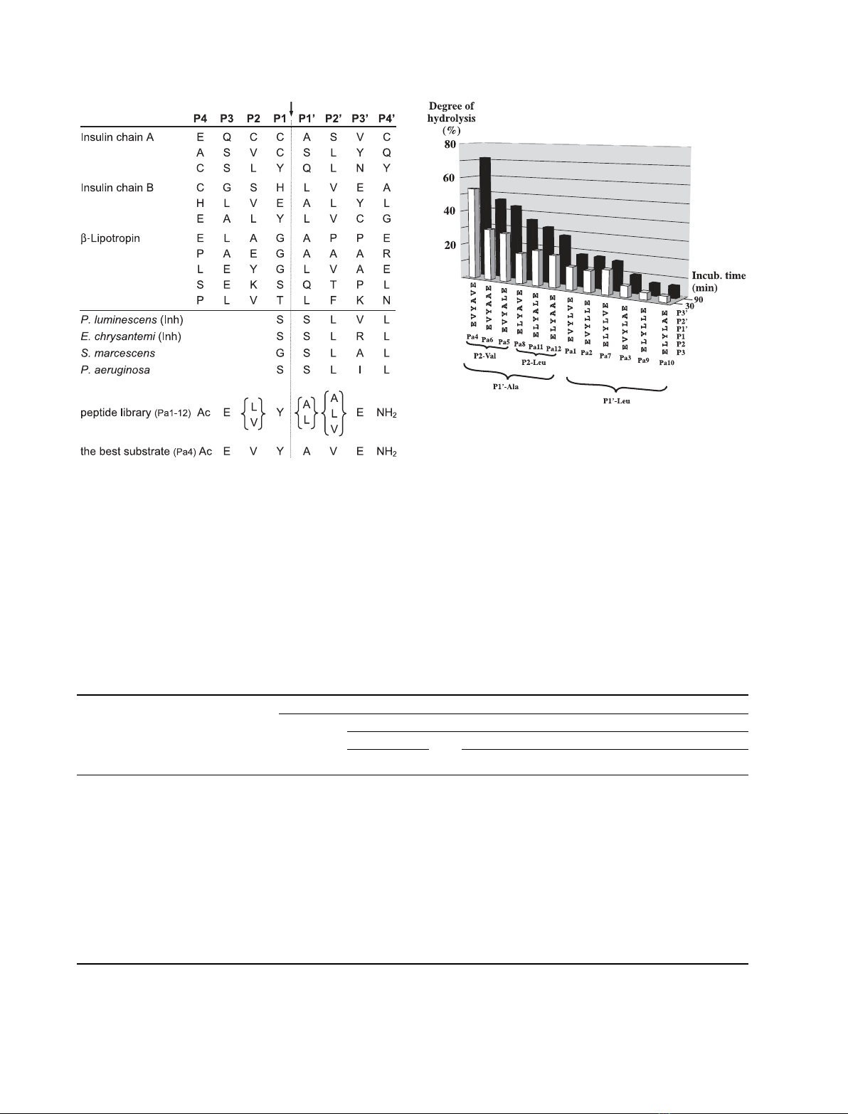 efficiency of hydrolysis in the order P1¢>P2>P2¢. Six amino acids of the
