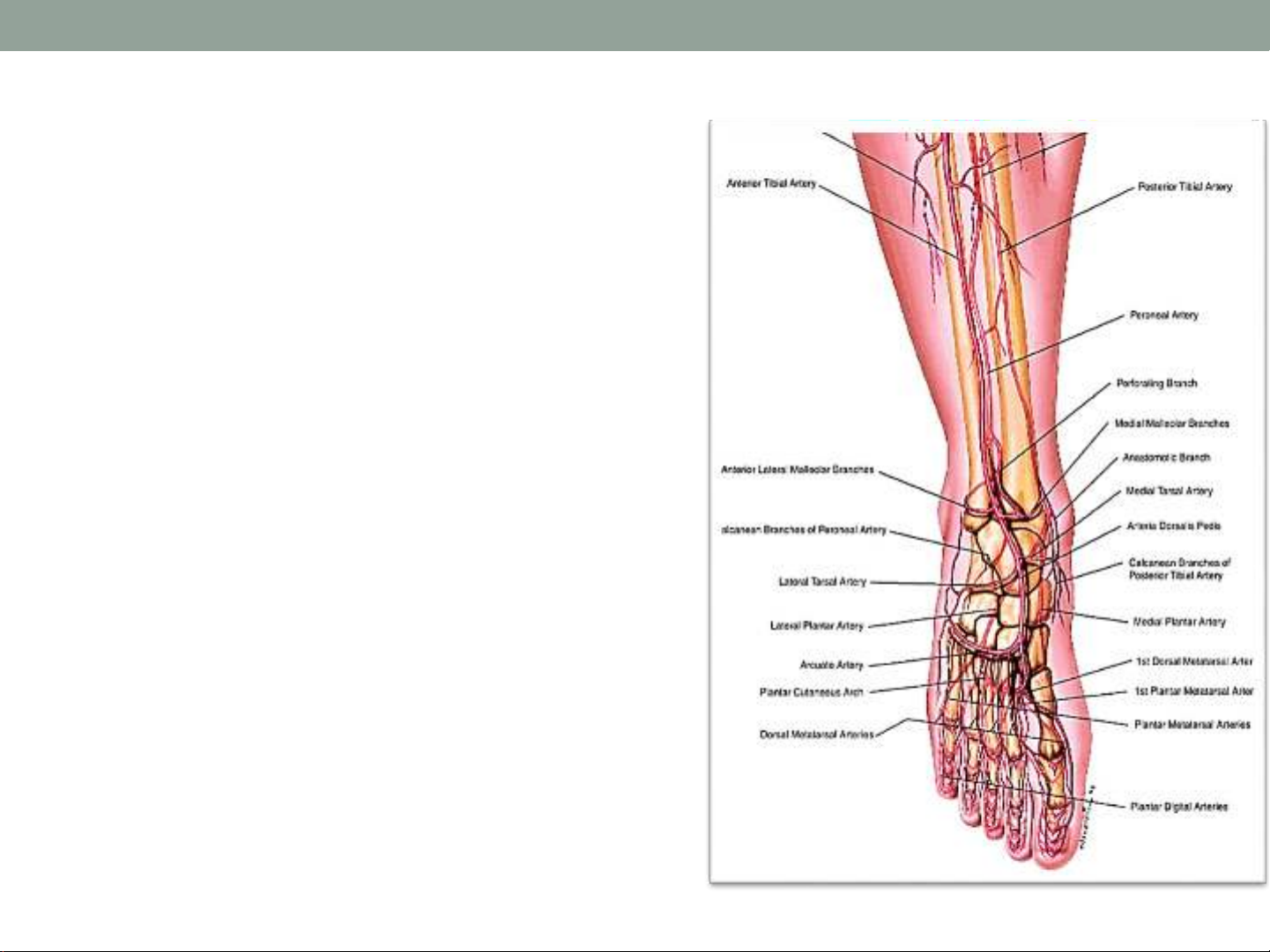 ĐM chày trước: mặt trước ngoài cẳng chân,