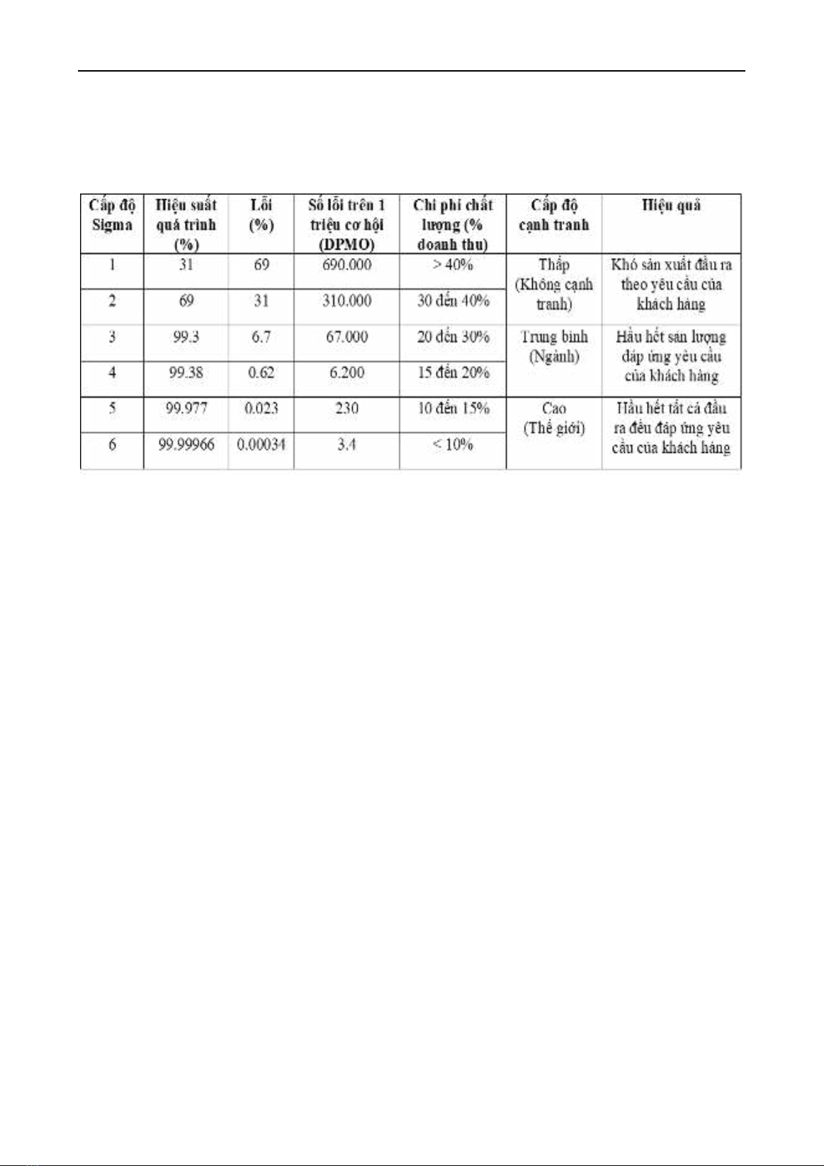 (Linderman, Schroeder, Zaheer, & Choo, 2003, tr. 194). Các cấp độ Sigma được trình bày trong