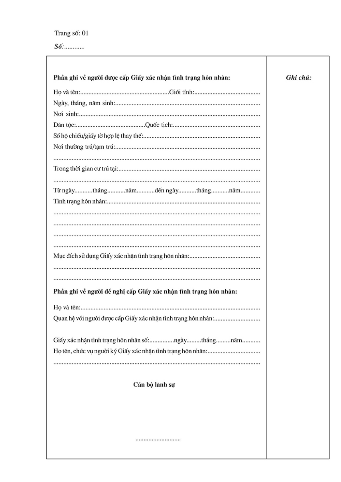 BTP-NGHT-2007-XNHN _ Sổ cấp Giấy xác nhận tình trạng hôn nhân