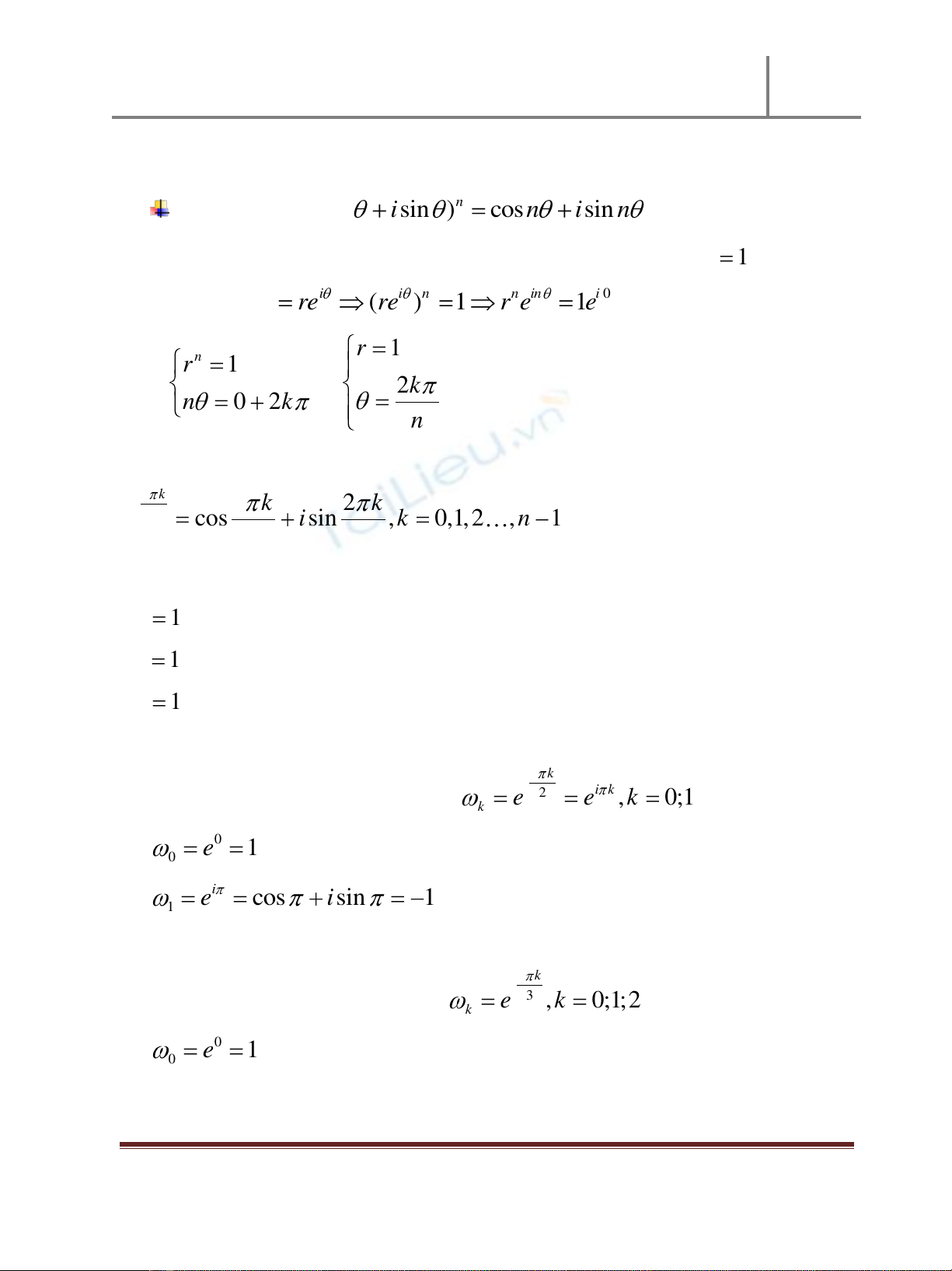 Lưu ý : tổng các căn bậc n của đơn vị bằng 1. Thật vậy