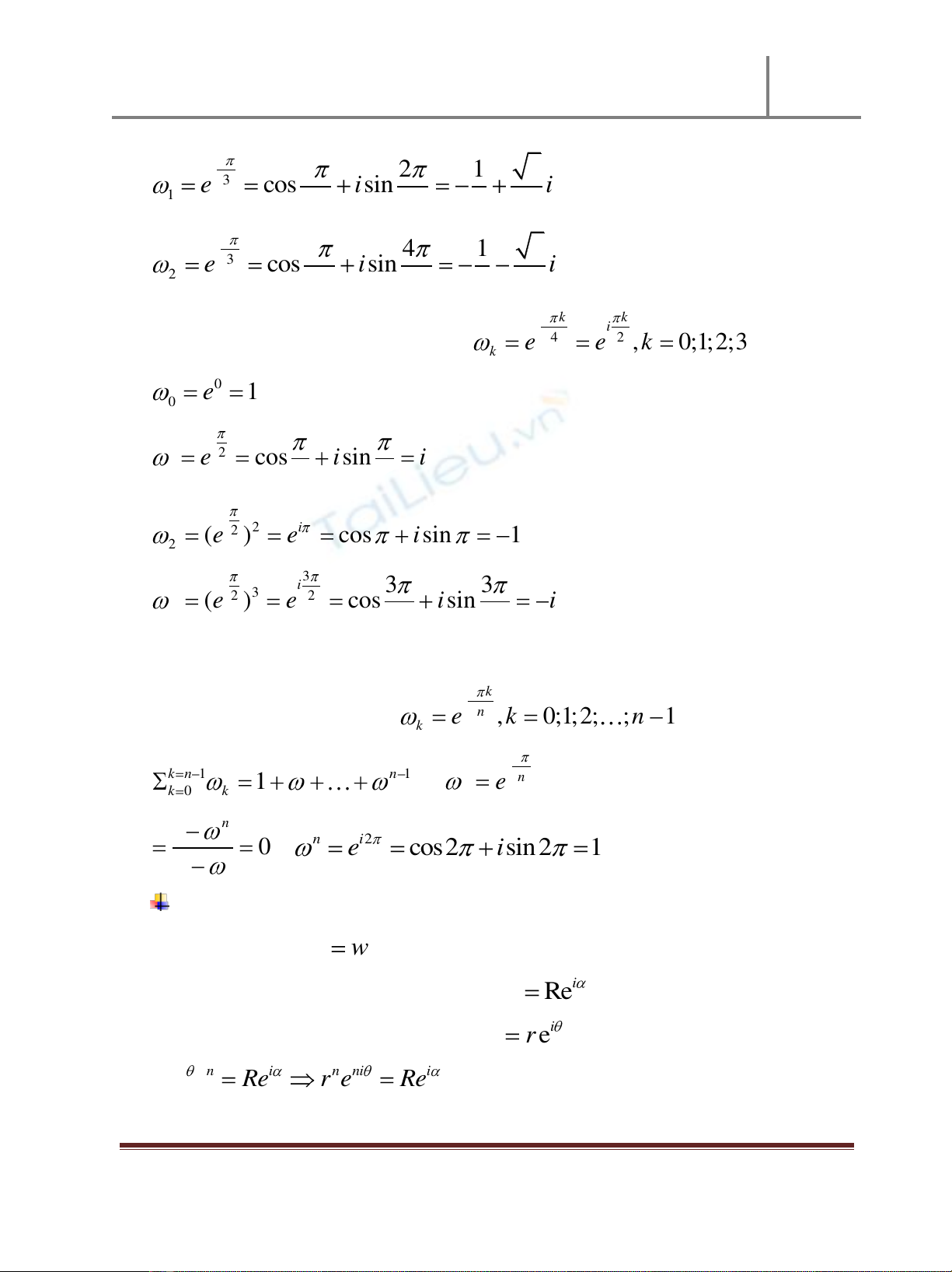 Xét căn bậc n (n∈ N, n>1)của một số phức w tùy ý . Tức là tìm nghiệm