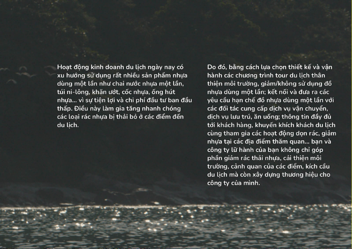 Sổ tay "Giảm nhựa dành cho công ty du lịch" hướng dẫn giảm rác thải nhựa, bảo vệ môi trường. Giải pháp & kinh nghiệm thực tế từ các công ty du lịch.