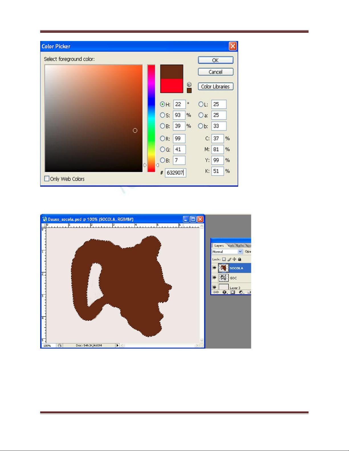 vào foreground để chọn màu tô với thông số màu là 632907 để tô cho