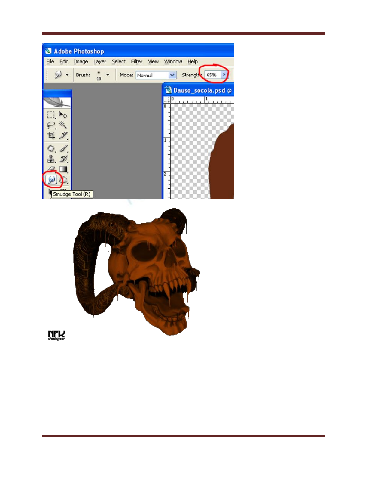 Smudgle Tool với Strength khoảng 65% để trây các vết đen trên hộp sọ