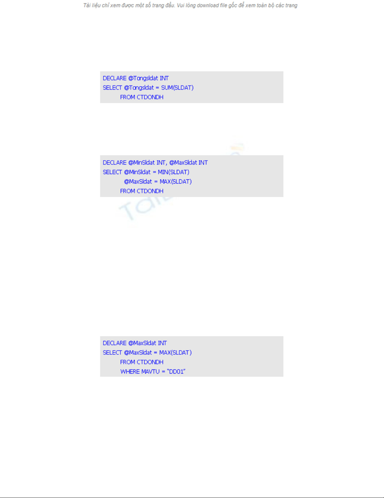 l ng đ t) trong b ng CTDONDH, b n s d ng l nh ượ ặ ả ạ ử ụ ệ SELECT nh sau :ư