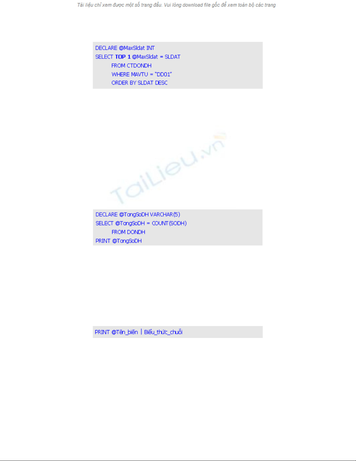 bình th ng không thông báo l i. Bi n @TongSoDH ph i có ki u là s nguyên INT.ườ ỗ ế ả ể ố