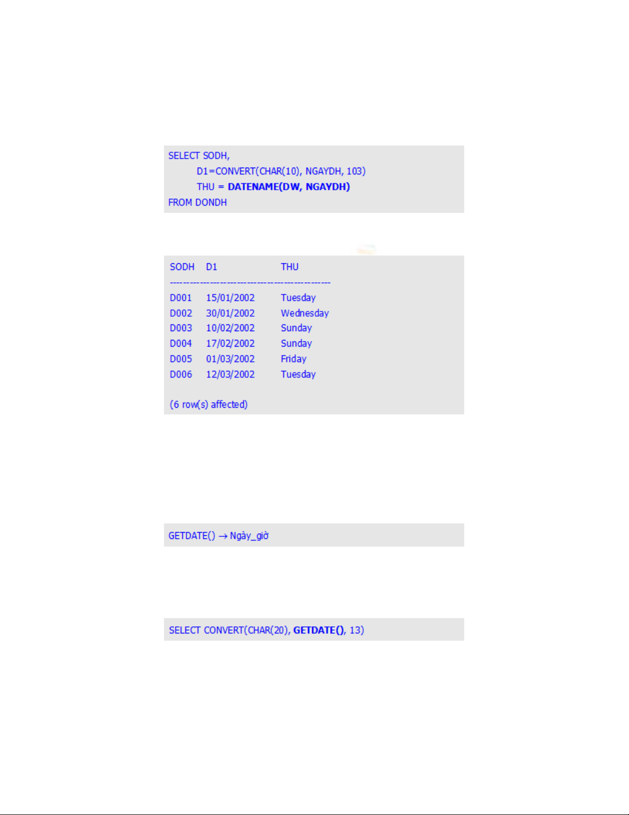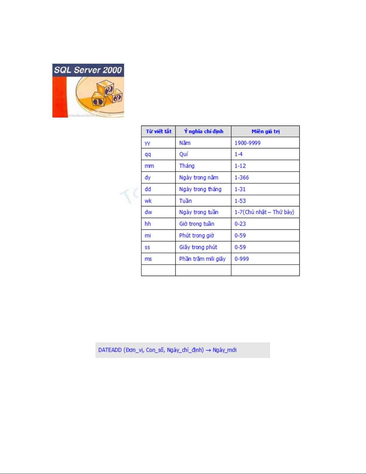 SQL Server 2000 : Các hàm ngày giờ