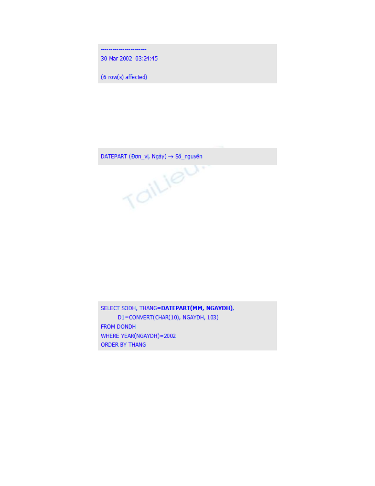 DATEPART nh sau :ư
