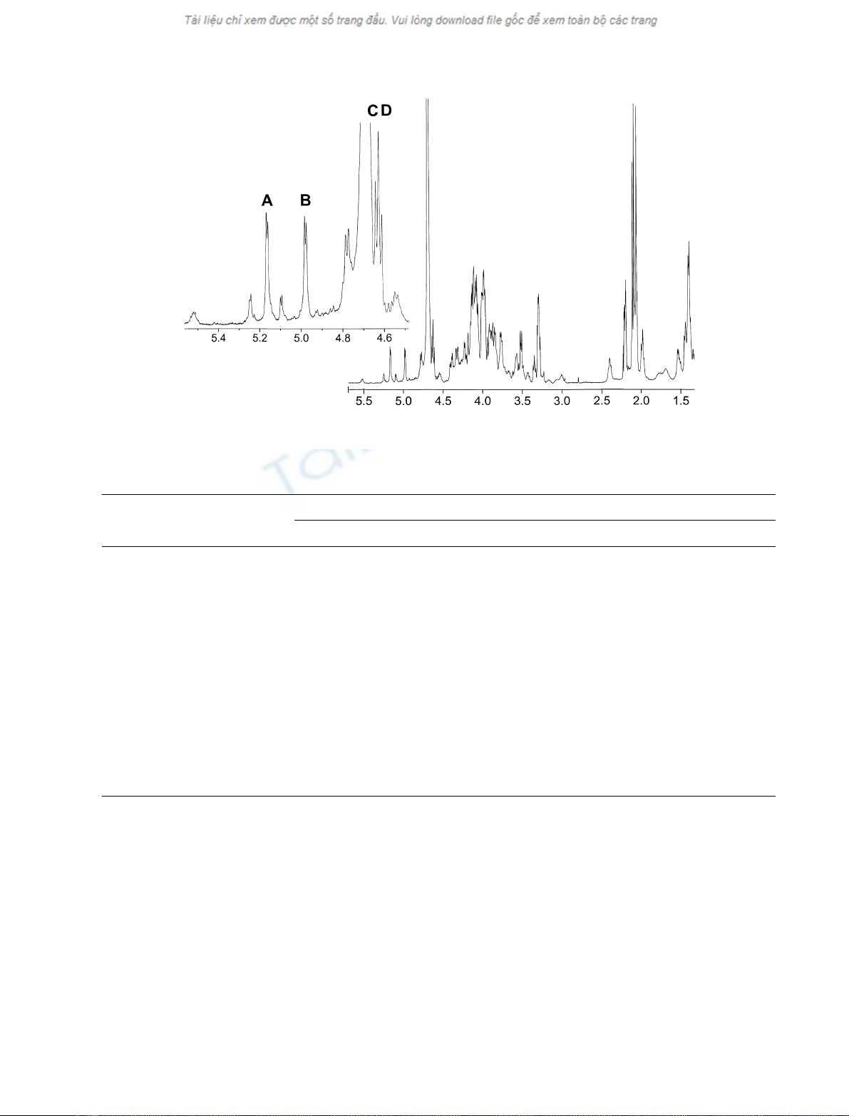 H NMR spectrum (35 °C, 500 MHz) of the cell wall polysaccharide from S. mitis SK598. A–D refer to anomeric protons as described in the