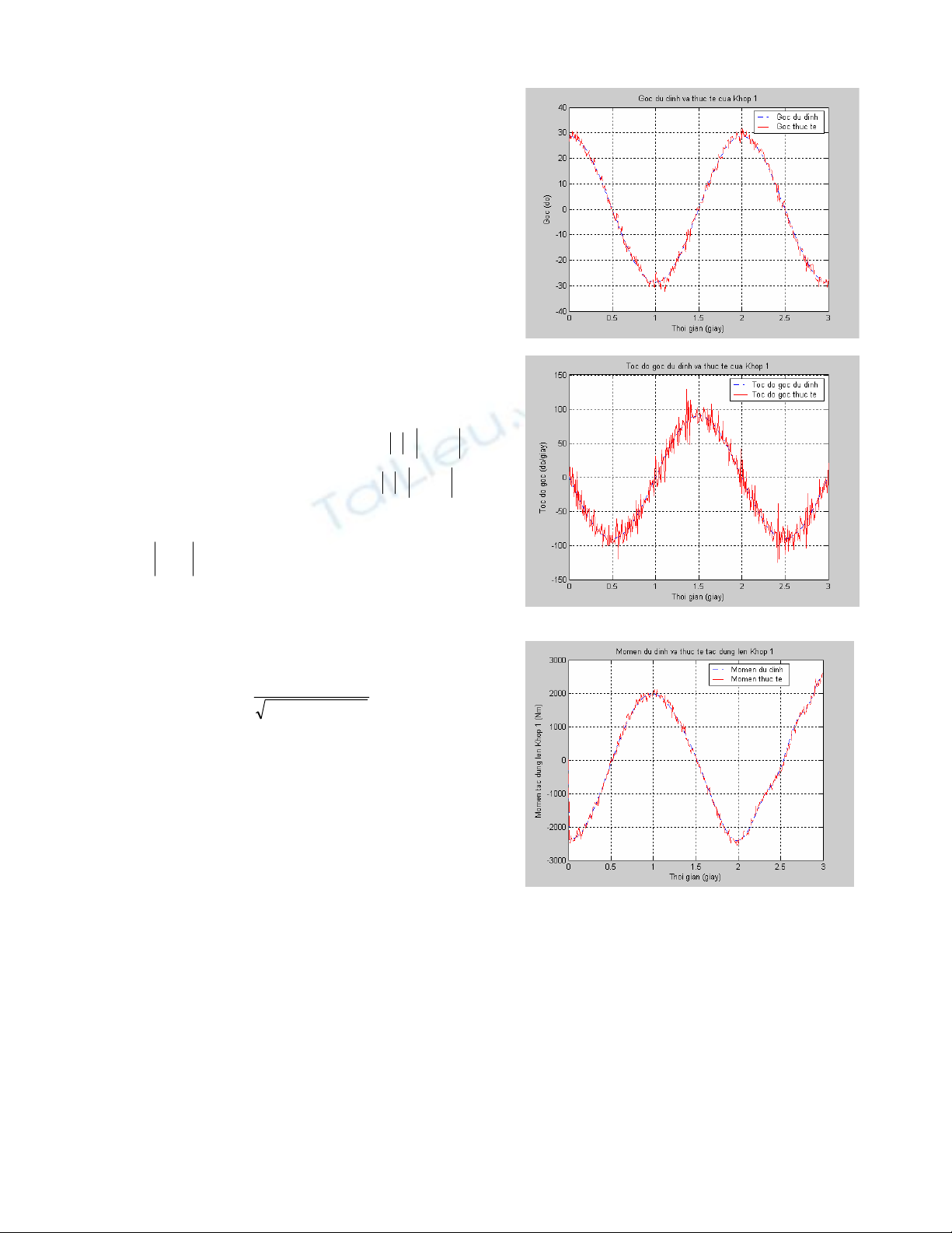 Biểu diễn của momen dự định và thực tế tại khớp một