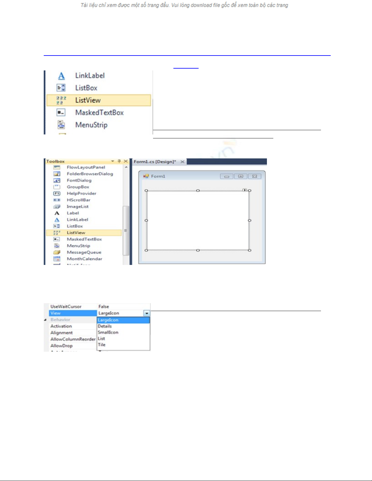 Listview. S có 4 thu c tính hi n th đ chúng ta l aẽ ộ ể ị ể ự