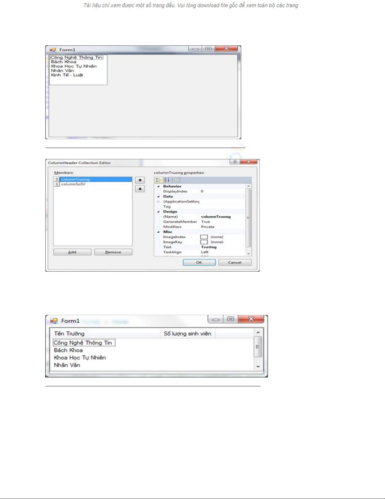 myListView.Columns.Add("Tên Tr ng"ườ , 200);