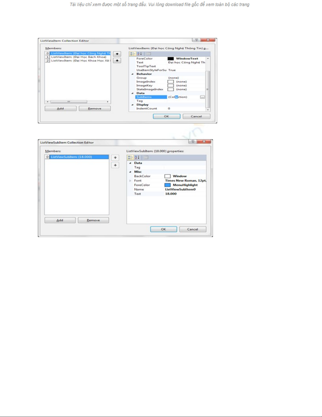 - M i Item add s có các thu c tính nh : Text, ForeColor, Text, ImageIndex… ỗ ẽ ộ ư