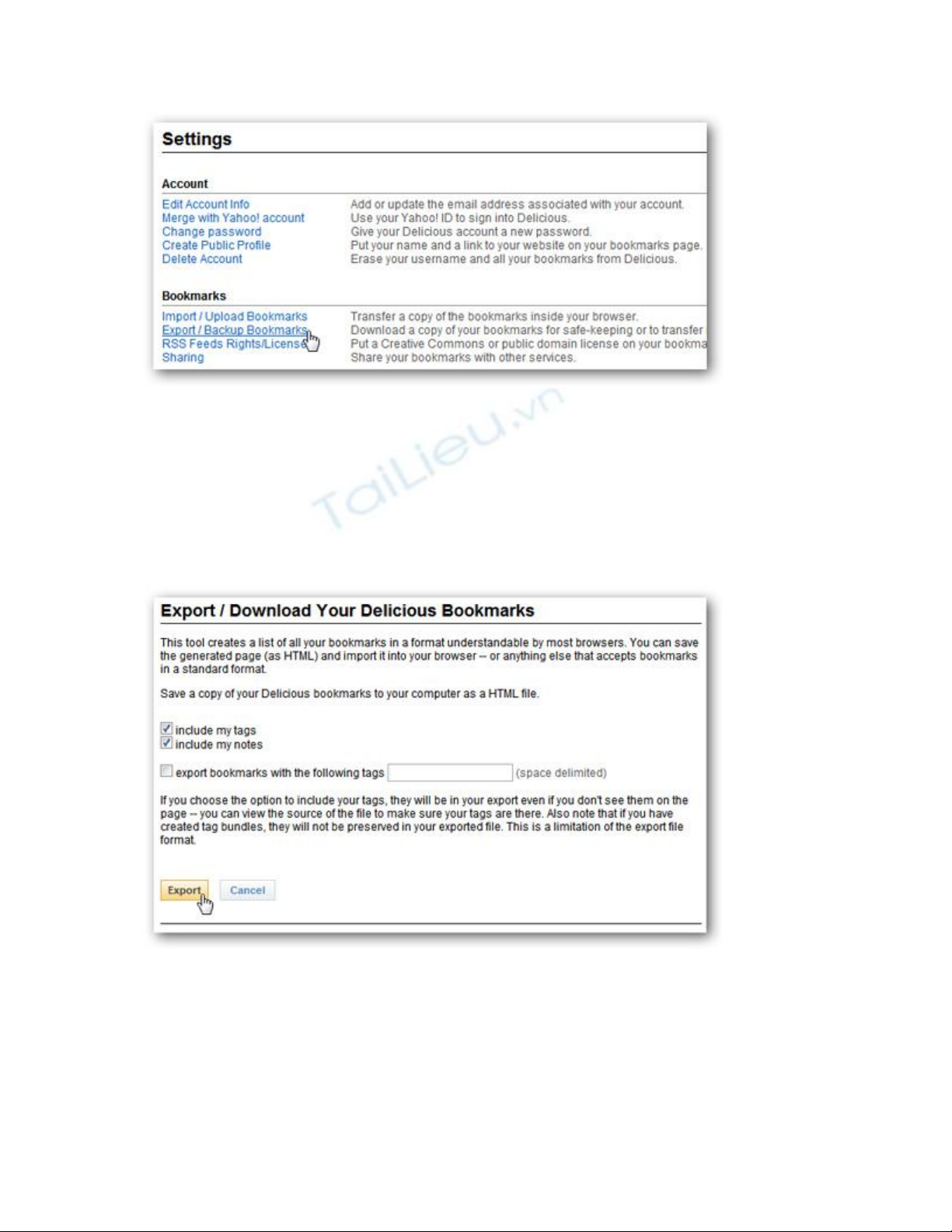 Lưu danh sách Delicious bookmark dưới dạng