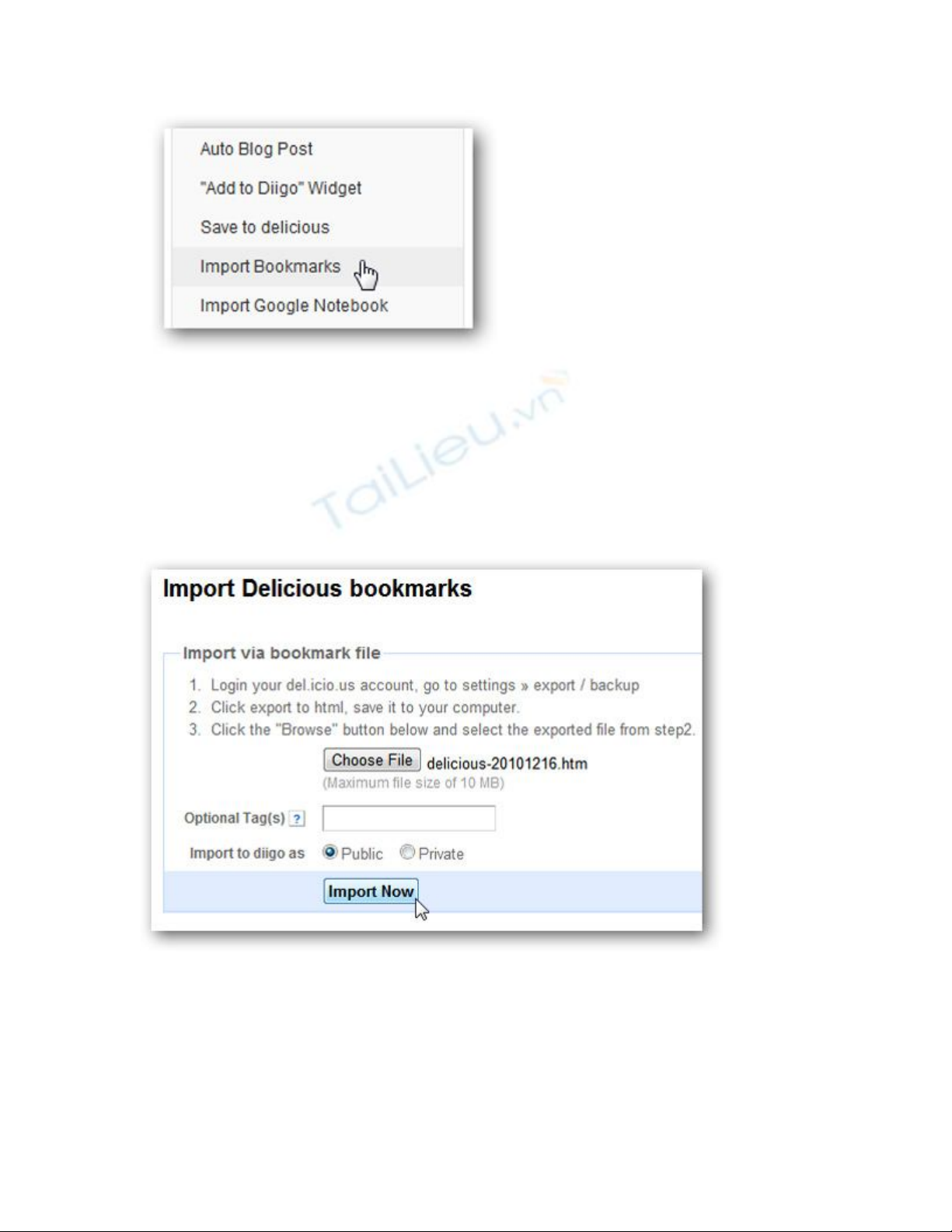Nhập bookmark vào Diigo: