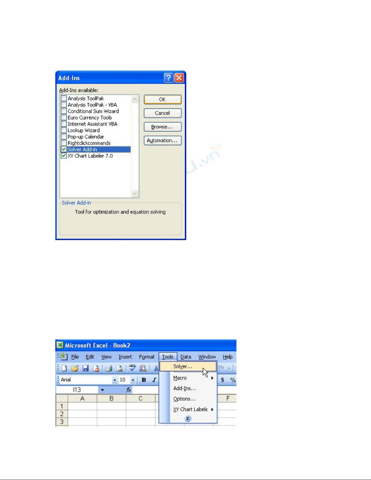 Các bước thực hiện Add-Ins Solver cho Excel 2003 như sau: