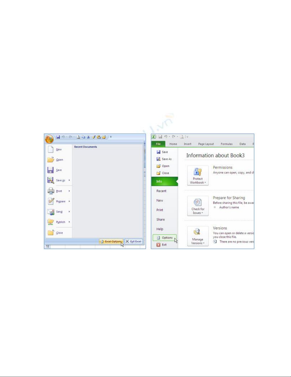 Hình 4. Vào Excel Options trong Excel 2007 & Excel 2010