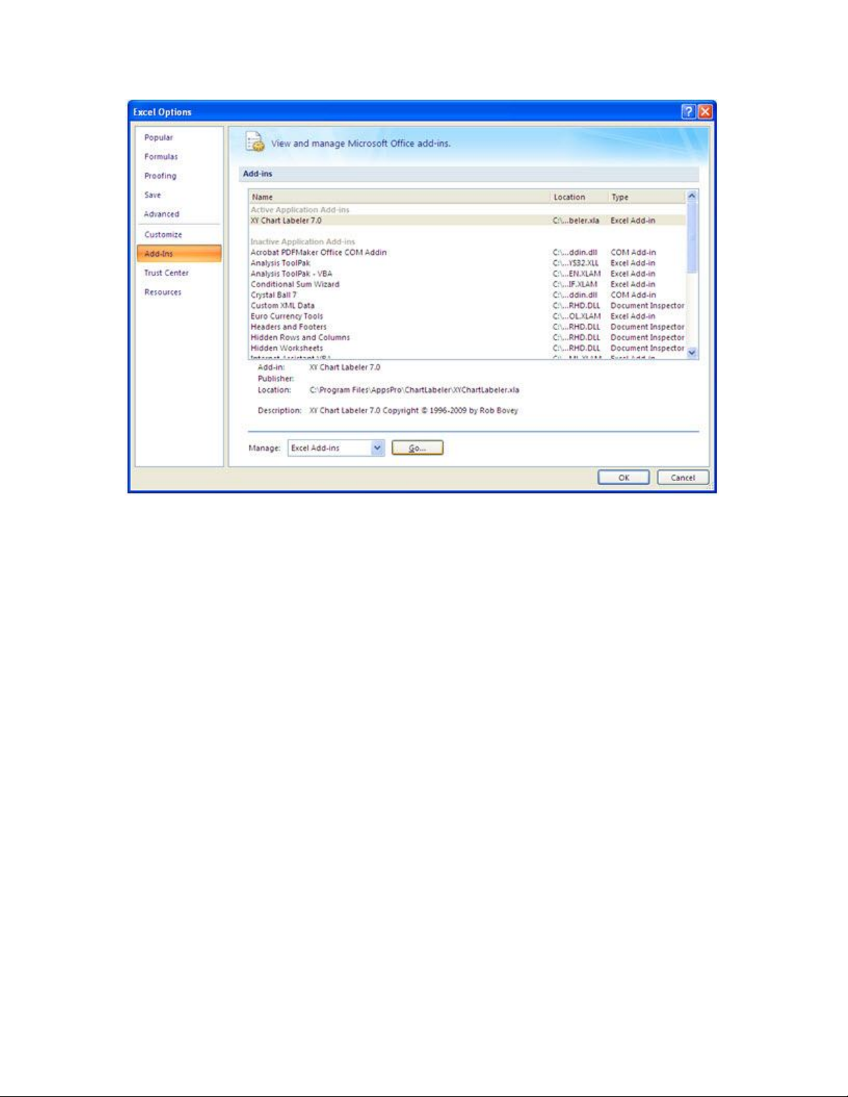 Hình 2. Hộp thoại Add-Ins chứa các chức năng mở rộng của Excel