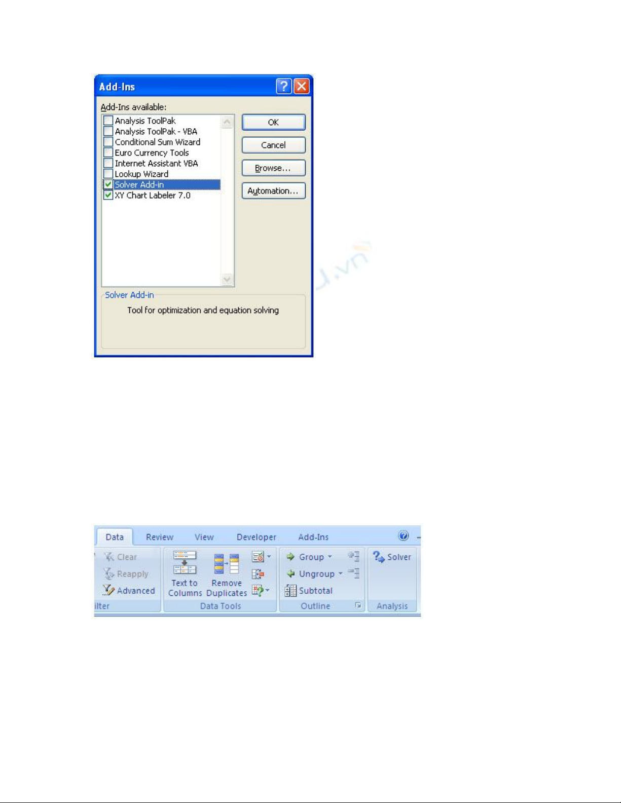 thực hiện Add-In Solver trong Excel 2007-2010 cũng tương tự nhau. Các hình