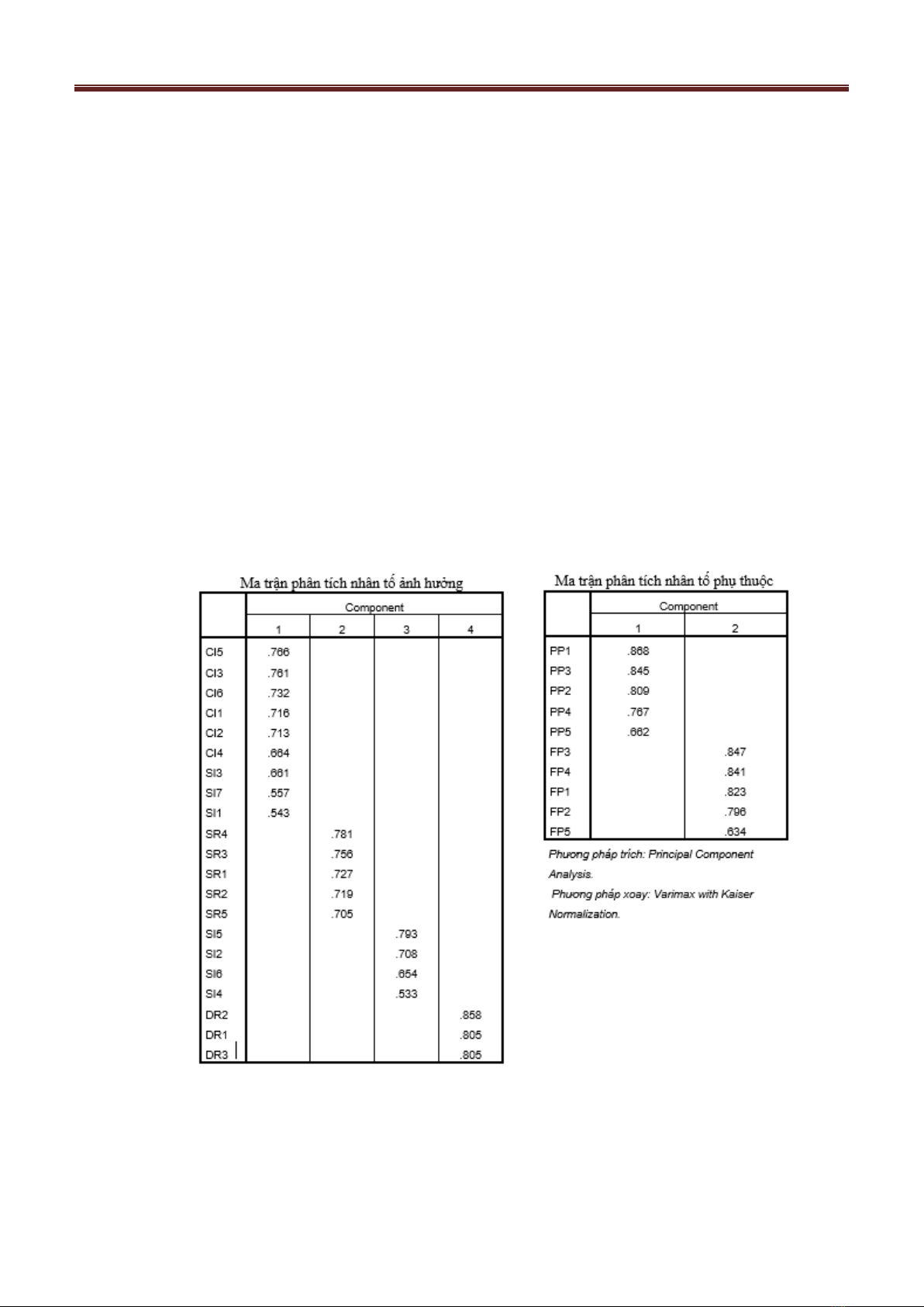 Bảng 2). Do vậy, 3 biến quan sát này sẽ bị loại trong các kiểm định tiếp theo. Còn lại, các nhân tố đều
