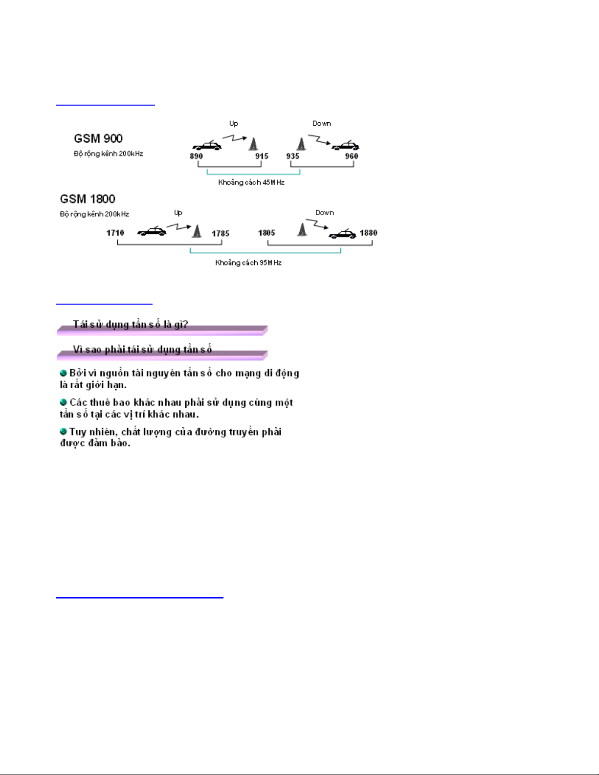 Băng tần GSM 900MHz và băng tần GSM 1800MHz