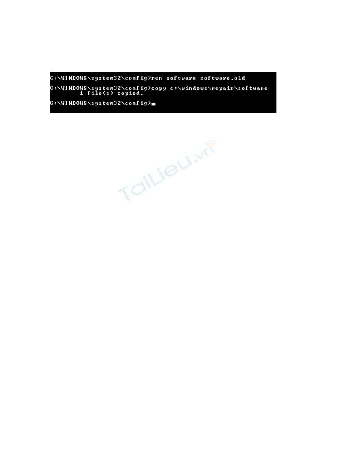 SAu đó enter và nhập típ cú pháp copy C:WINDOWSREPAIRSOFTWARE <--ENTER