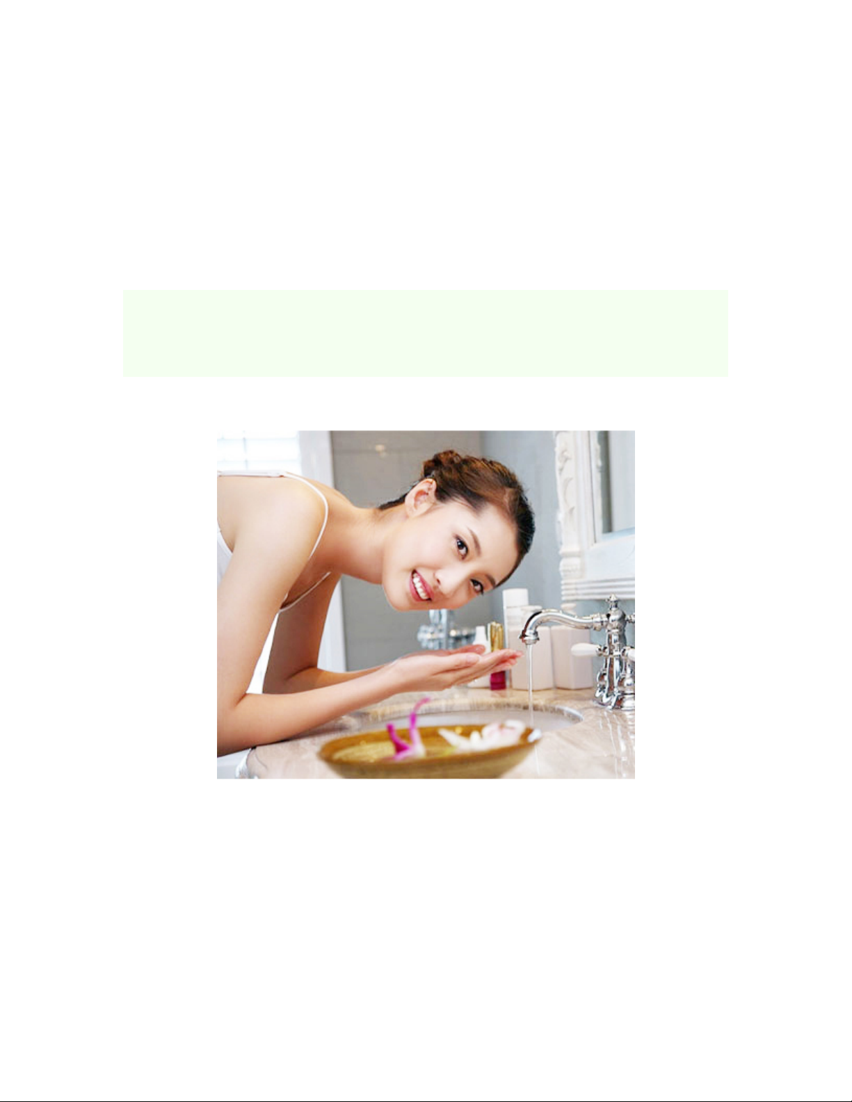 mặt, nhẹ nhàng rửa sạch vùng da giữa má và toàn bộ mặt.