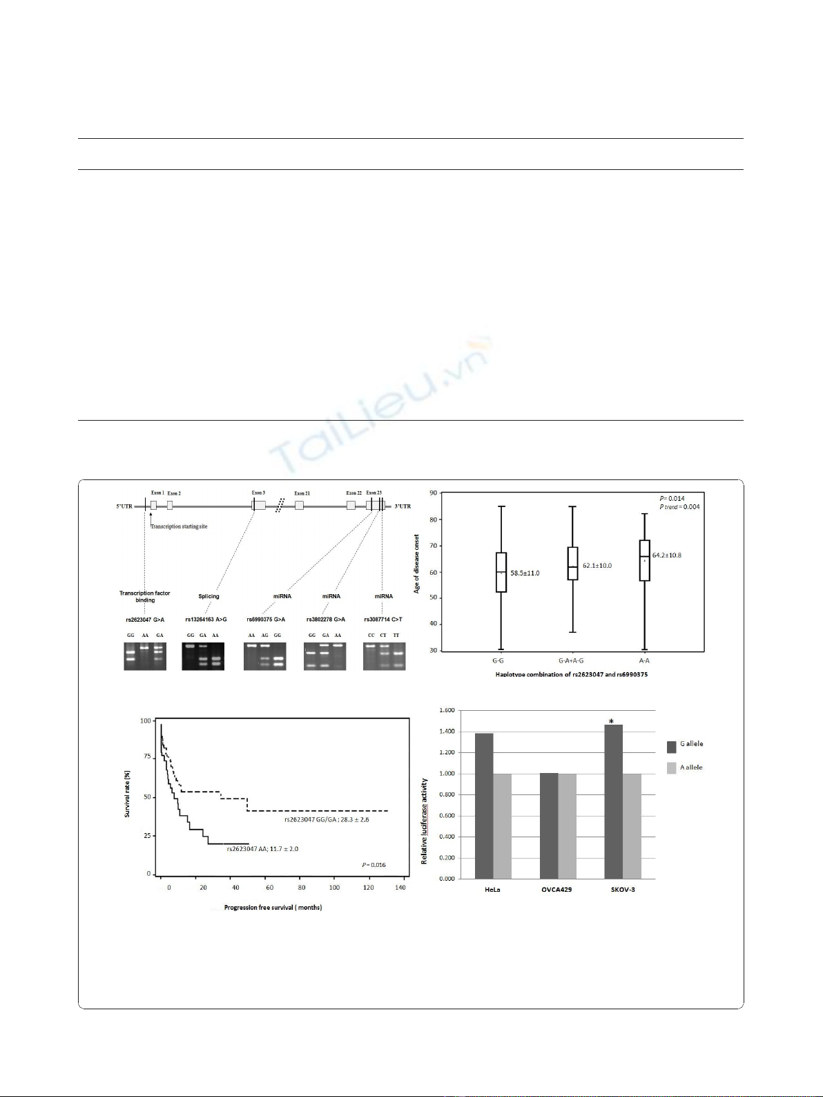 gene assays, rs2623047 G allele showed a slightly higher promoter activity than the A allele in the SKOV3