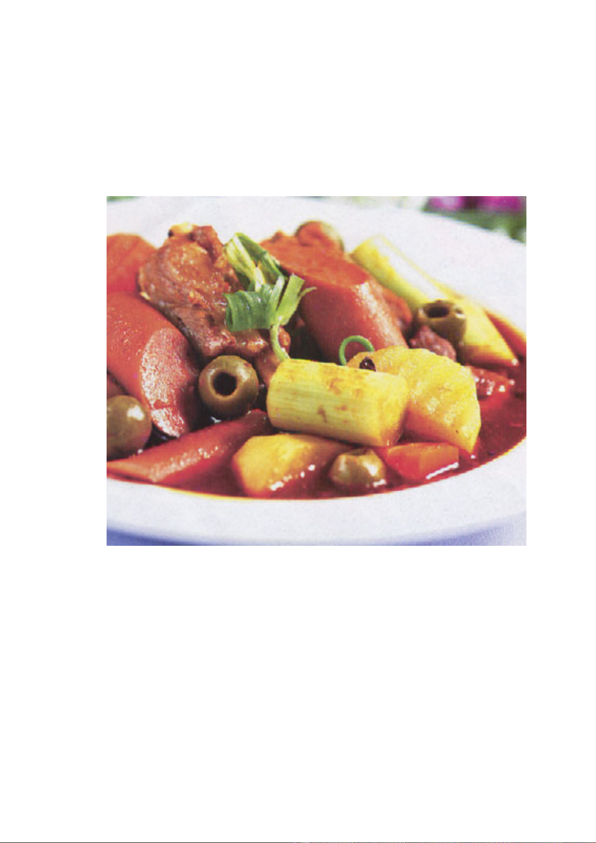 - Cho xúc xích, ô-liu, boa-rô và bột năng pha nước vào tạo độ sánh.