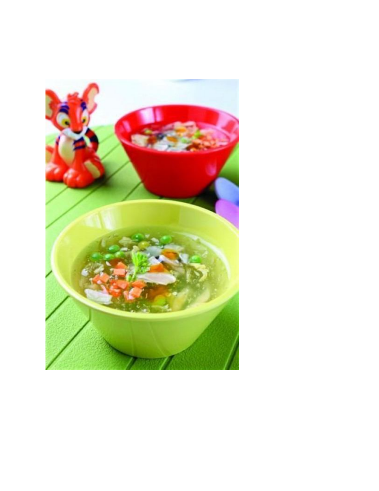 Vớt bỏ gừng, múc súp ra tô, trộn đều với dầu ăn dinh dưỡng, cho bé dùng