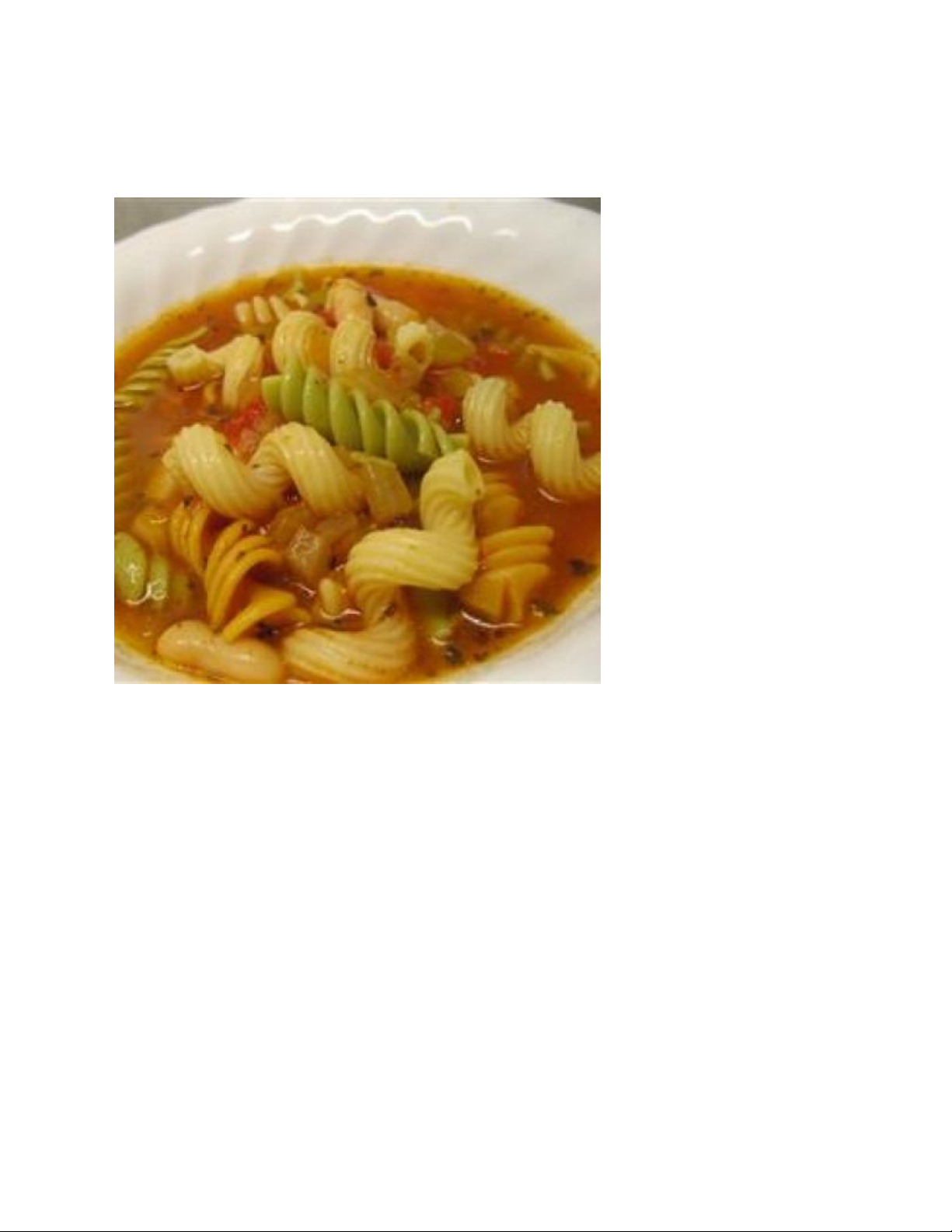 Mí ống, cà chua, đậu trắng, nước dùng gà, xốt cà chua và gia vị tạo