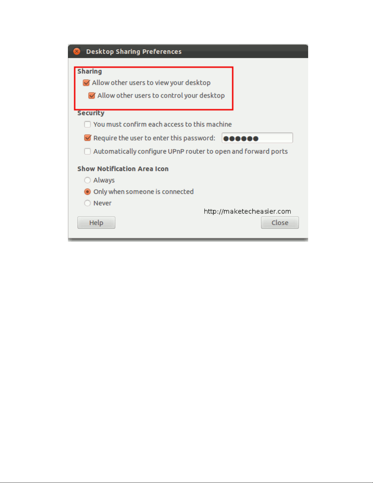 Bạn mở ứng dụng Desktop Sharing và đánh dấu kiểm vào hai tùy chọn