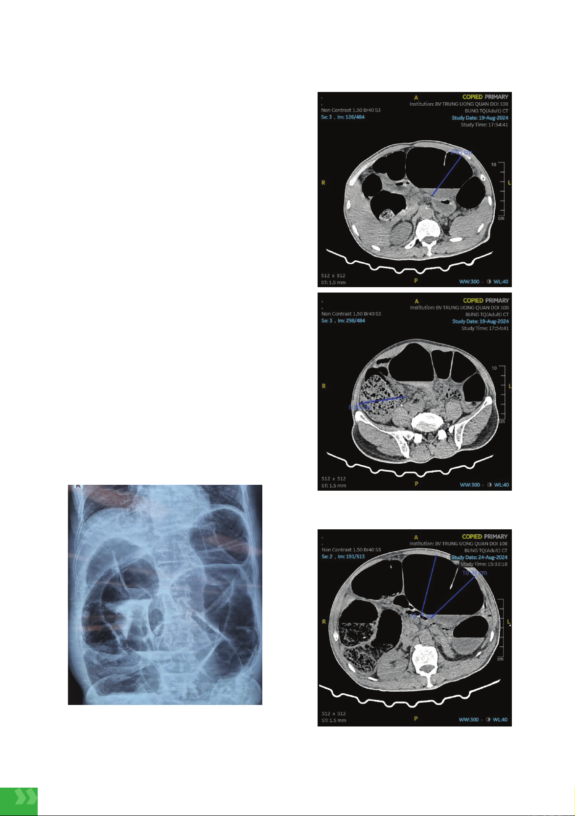 Chụp cắt lớp vi tính bụng thấy hình ảnh giãn lớn toàn bộ khung đại tràng; hình ảnh tắc ruột