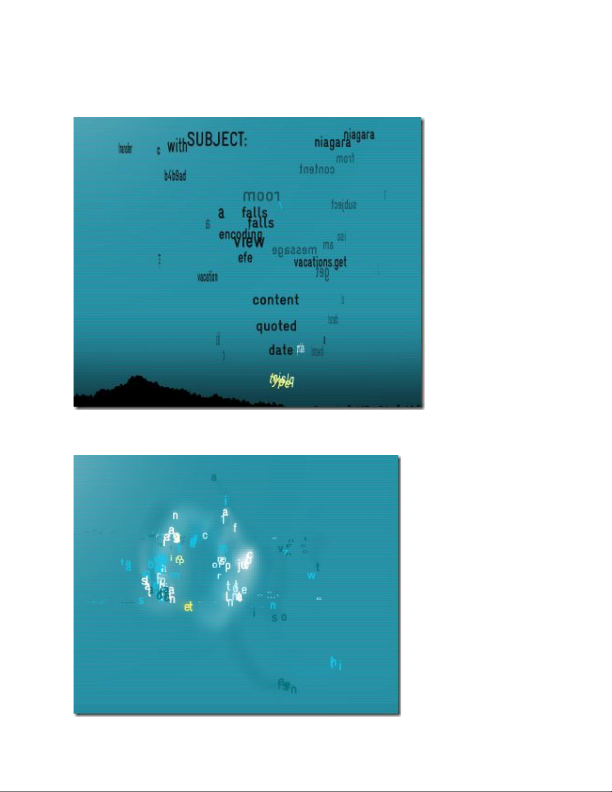 Các từ này sau đó được chia thành các ký tự riêng lẽ và tiếp tục xoáy hút vào một cơn