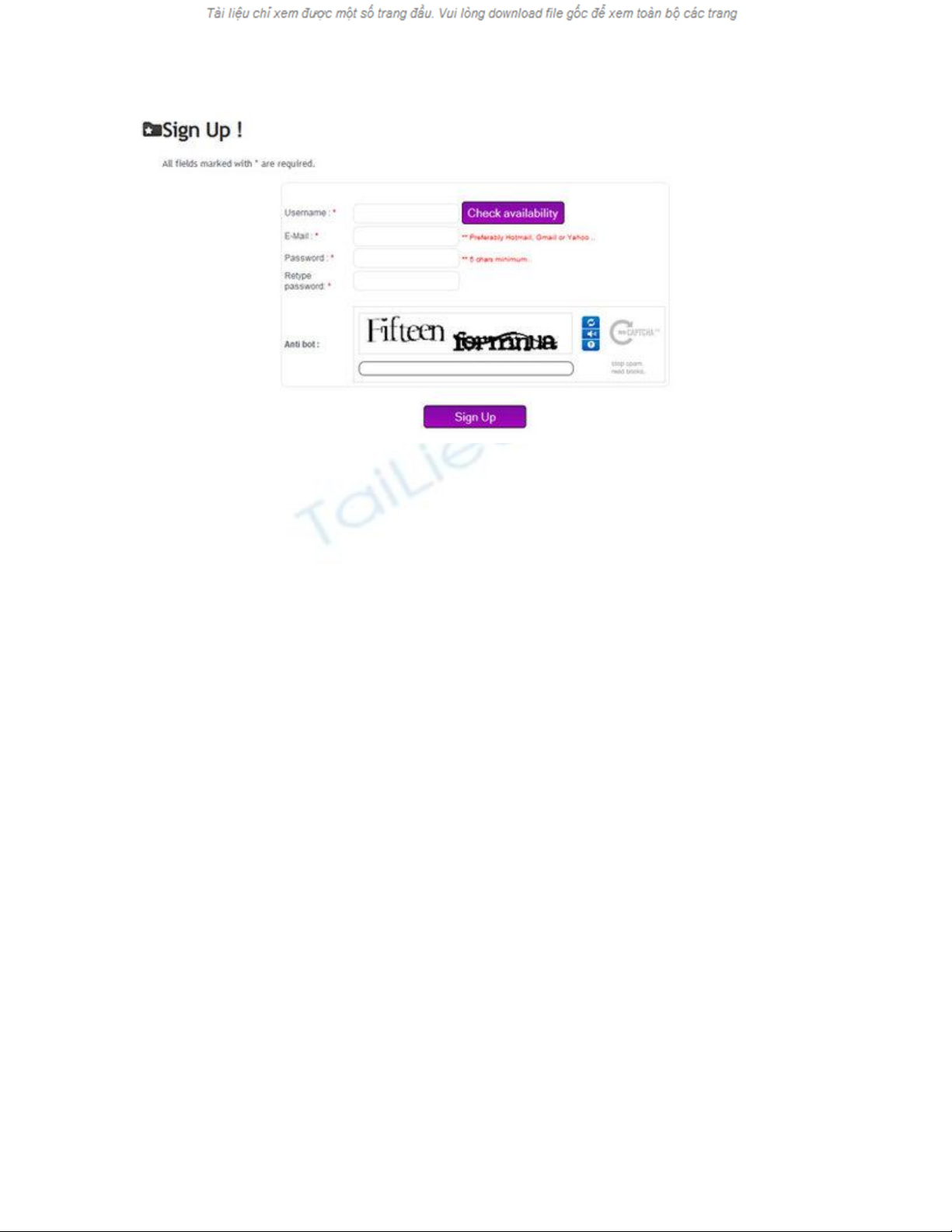 để kích hoạt, mật khẩu (Password) … rồi bấm nút Sign Up để đăng ký tài