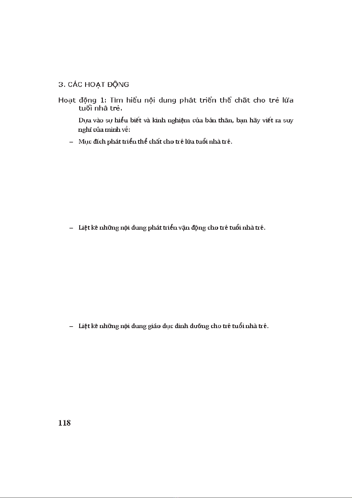 Hoạt động 1: Tìm hiểu nội dung phát triển thể chất cho trẻ lứa