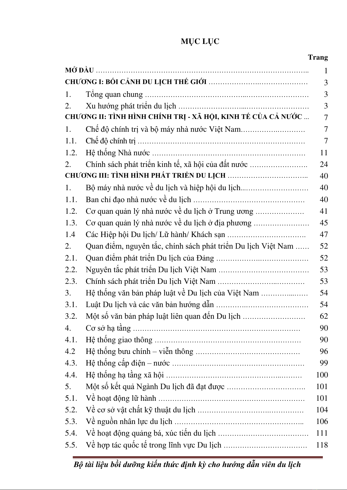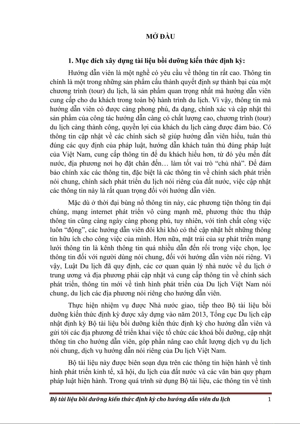 Bộ tài liệu bồi dưỡng kiến thức định kỳ cho hướng dẫn viên du lịch 1