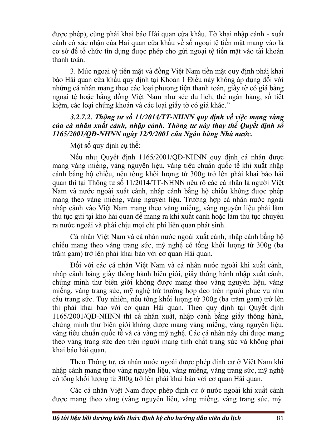 3.2.7.2. Thông tư số 11/2014/TT-NHNN quy định về việc mang vàng