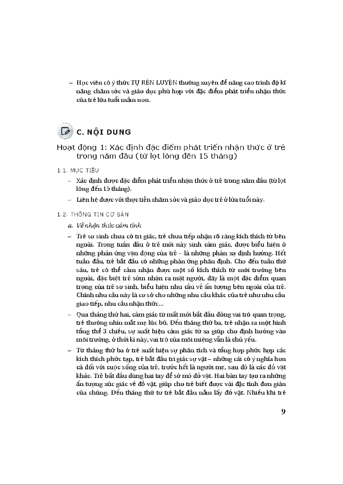 triSn hoKt @Qng nh;n th<c c=a tr, trong nhJng ngm @Au tiên (tB 0 — 15
