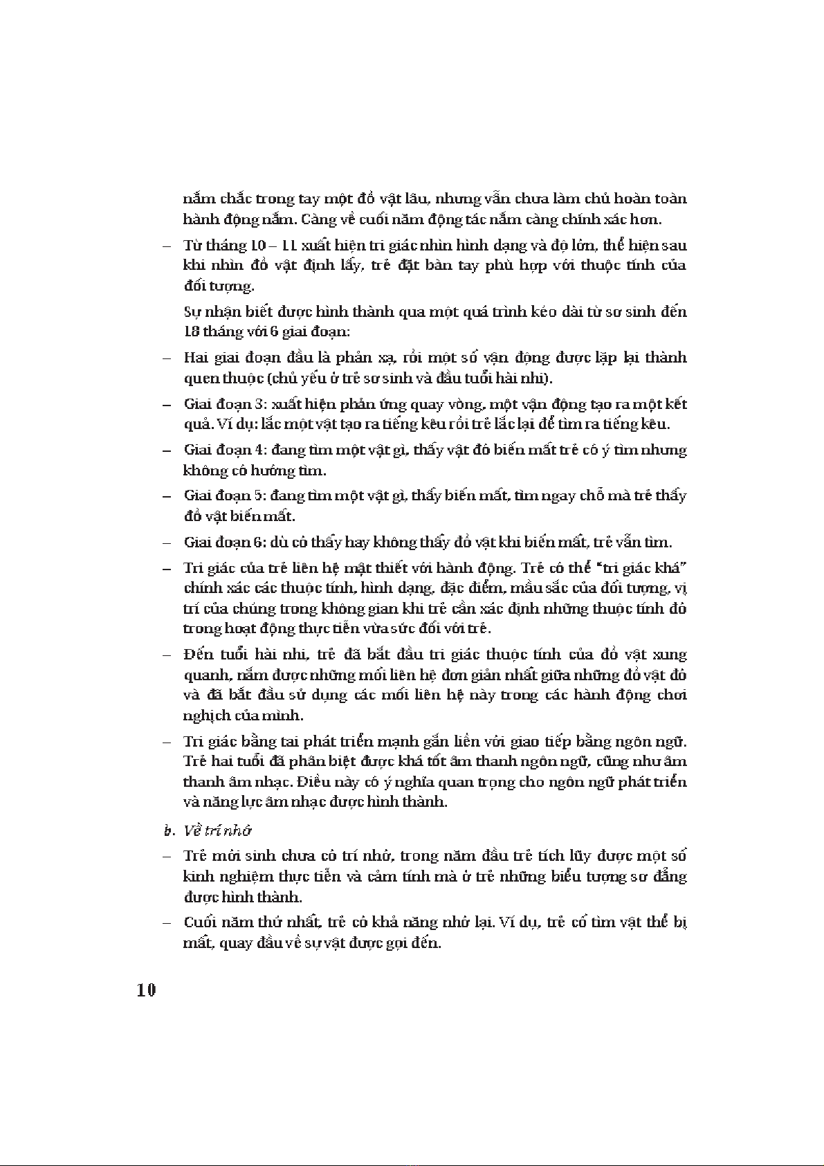 — zZn tufi hài nhi, trR -ã b!t -au tri giác thu,c tính c8a -. v0t xung