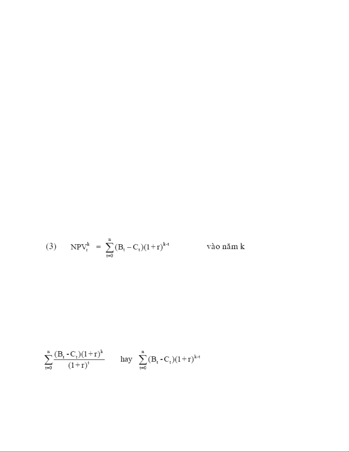 k cũng ở mức r. Công thức để tính hiện giá lợi ích ròng theo giai