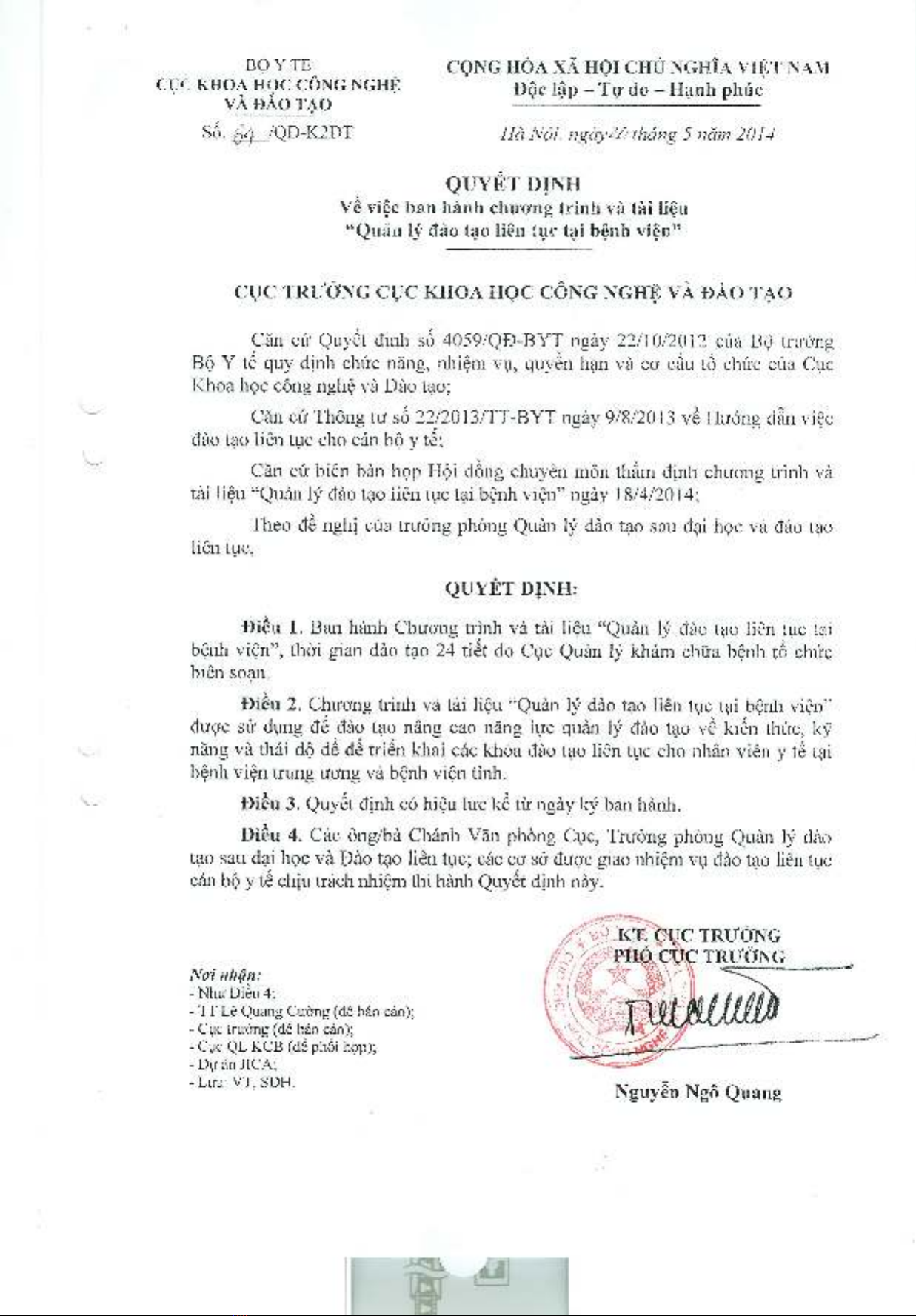 dẫn việc đào tạo liên tục cán bộ y tế. Đến nay hầu hết các bệnh viện Trung